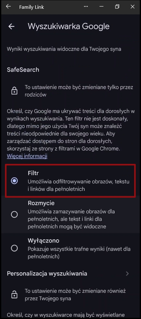 Ustawienia wyszukiwania treści w przeglądarce Google Chrom