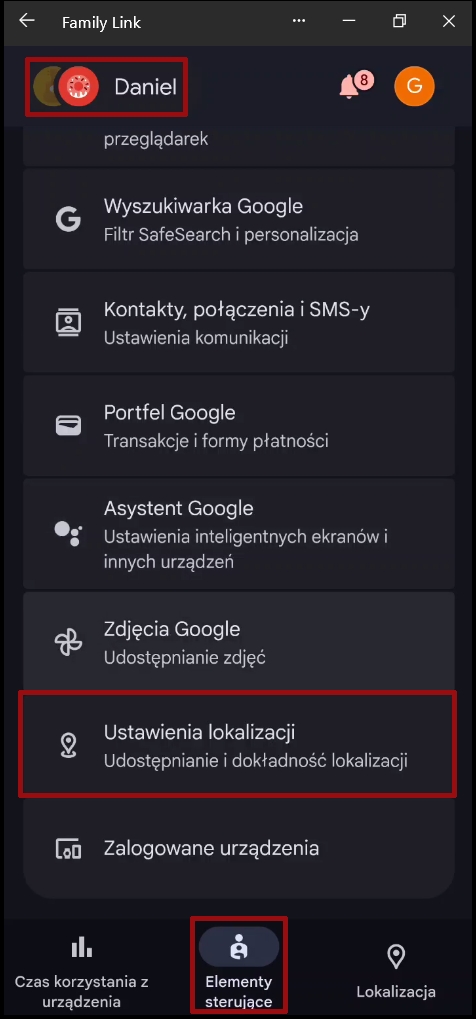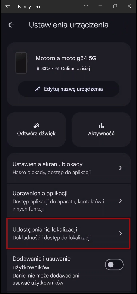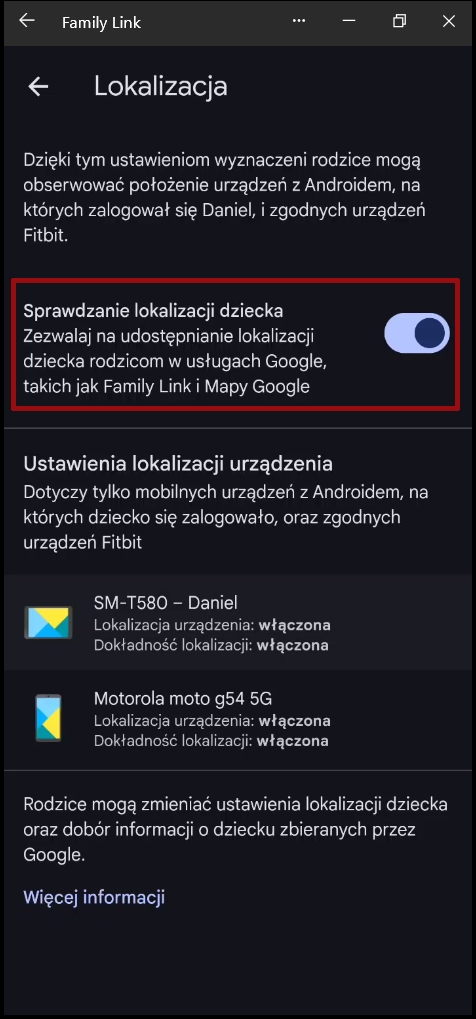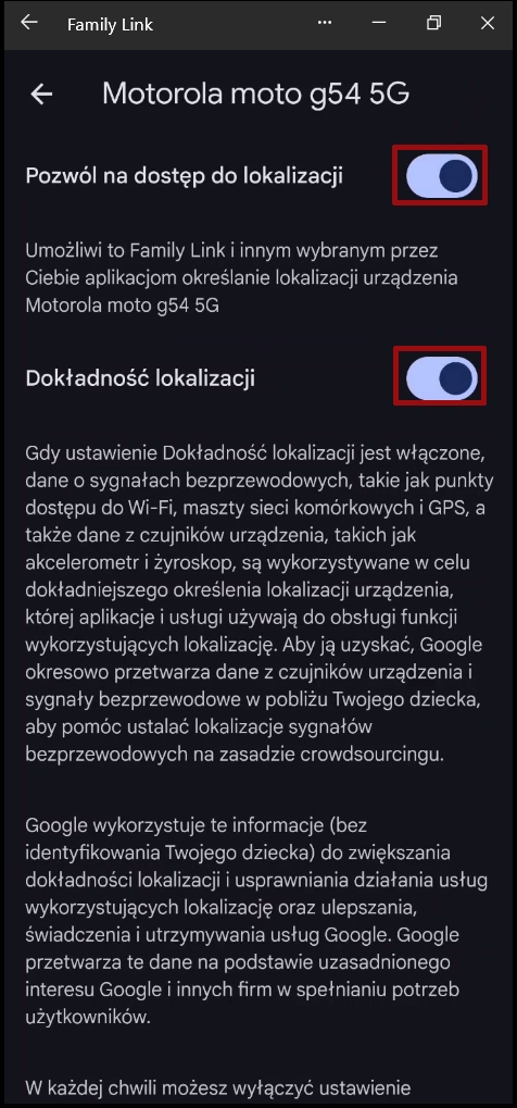 W pierwszej kolejności włączamy pozwolenie na przekazywanie lokalizacji dziecka rodzicom